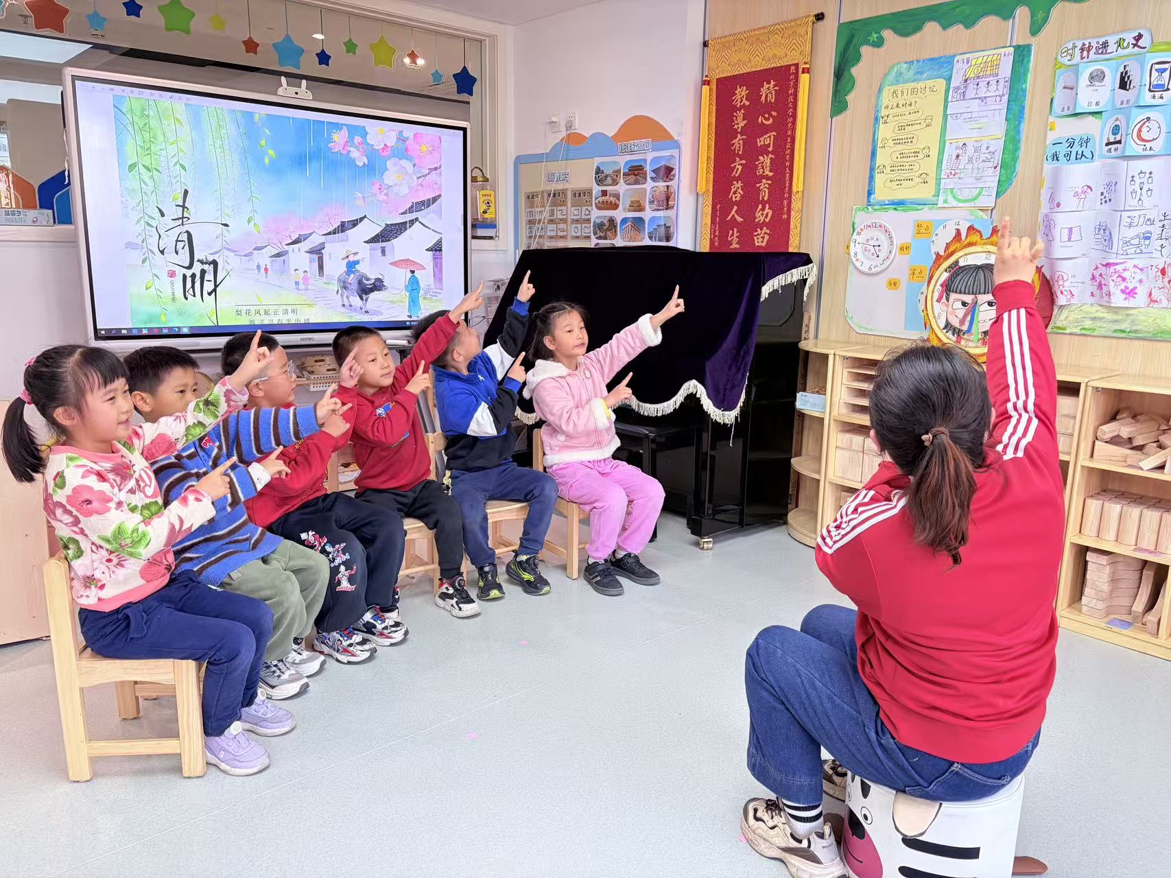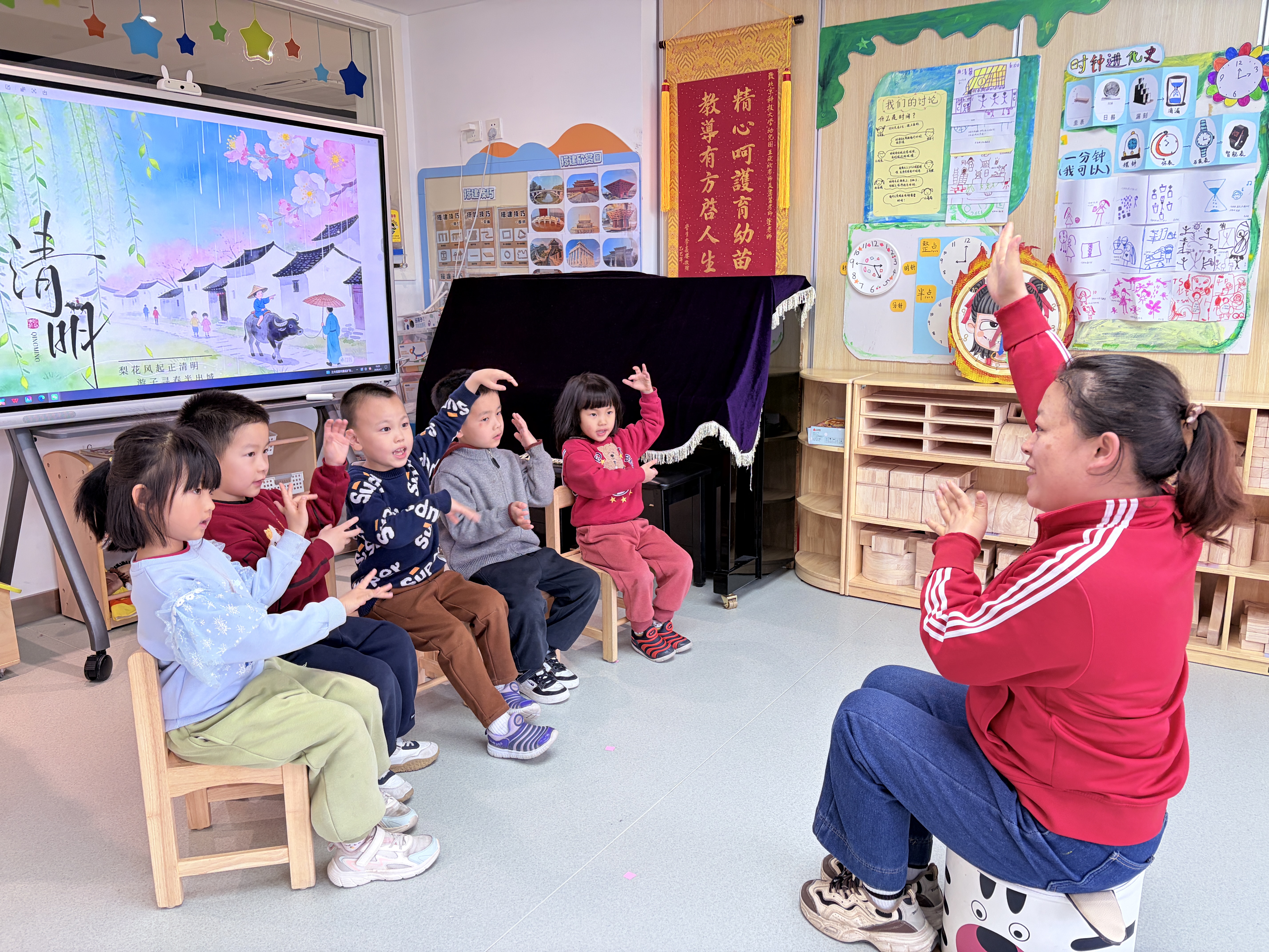 看春雨、赏柳树、识风筝,孩子们一眼就爱上了清明的国风之美。