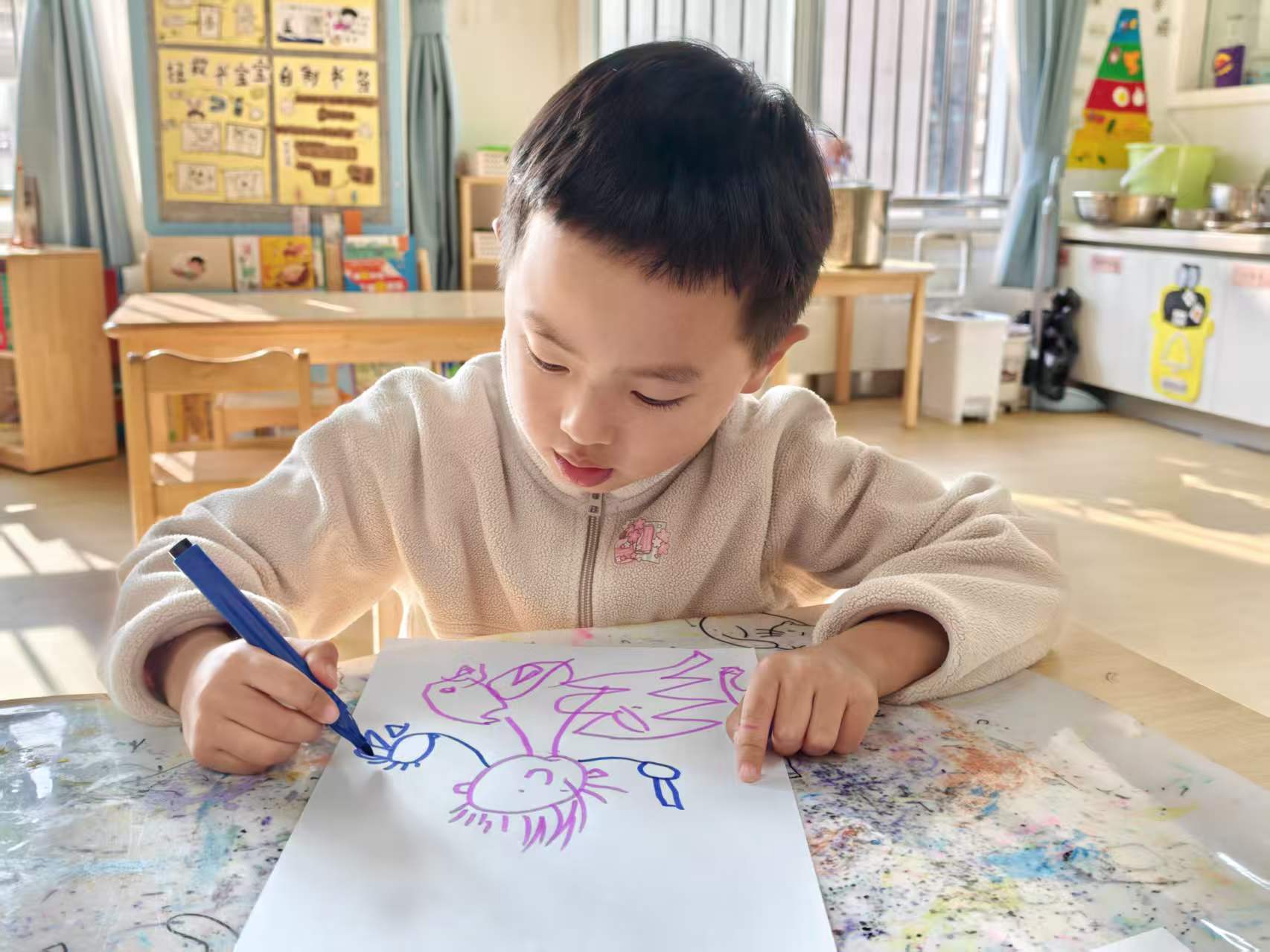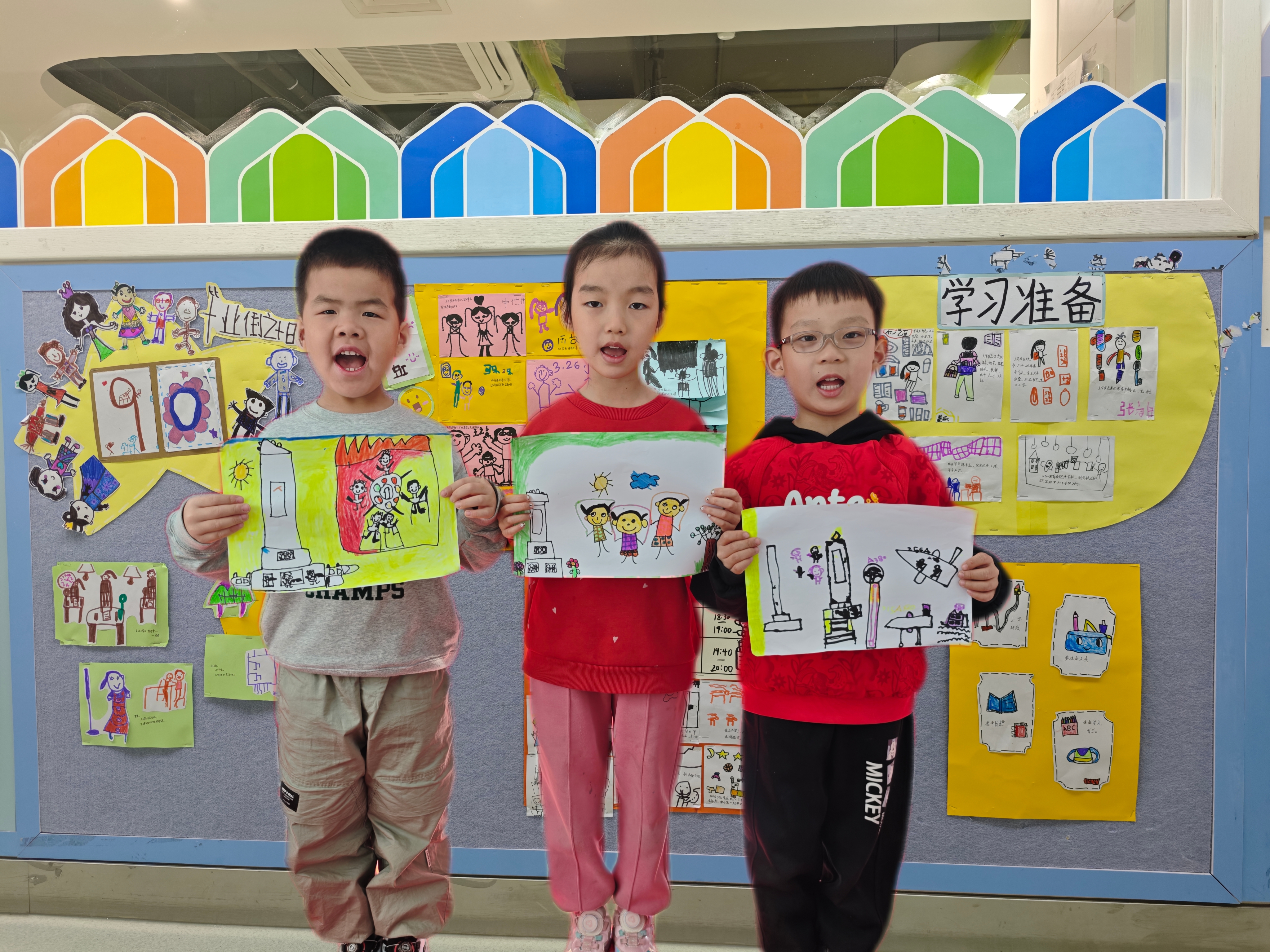 拿起画笔,画出心中的小英雄。最后集体向英雄致敬,小小的身影里,藏着满满的敬意。