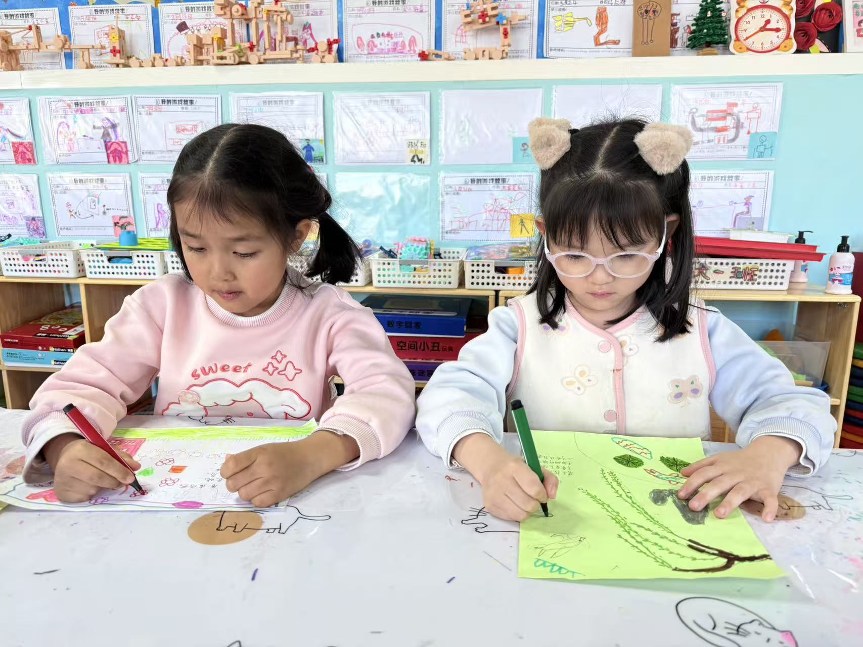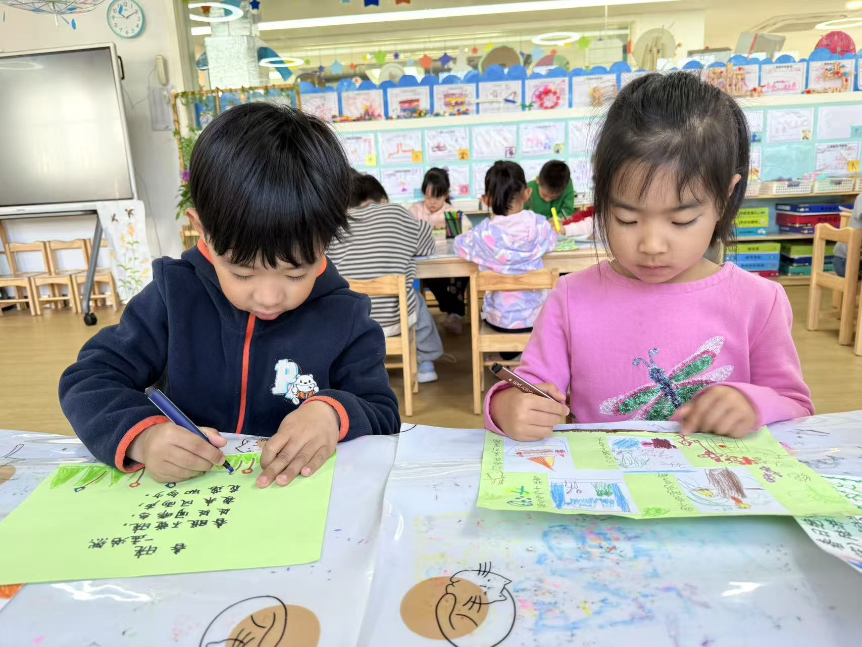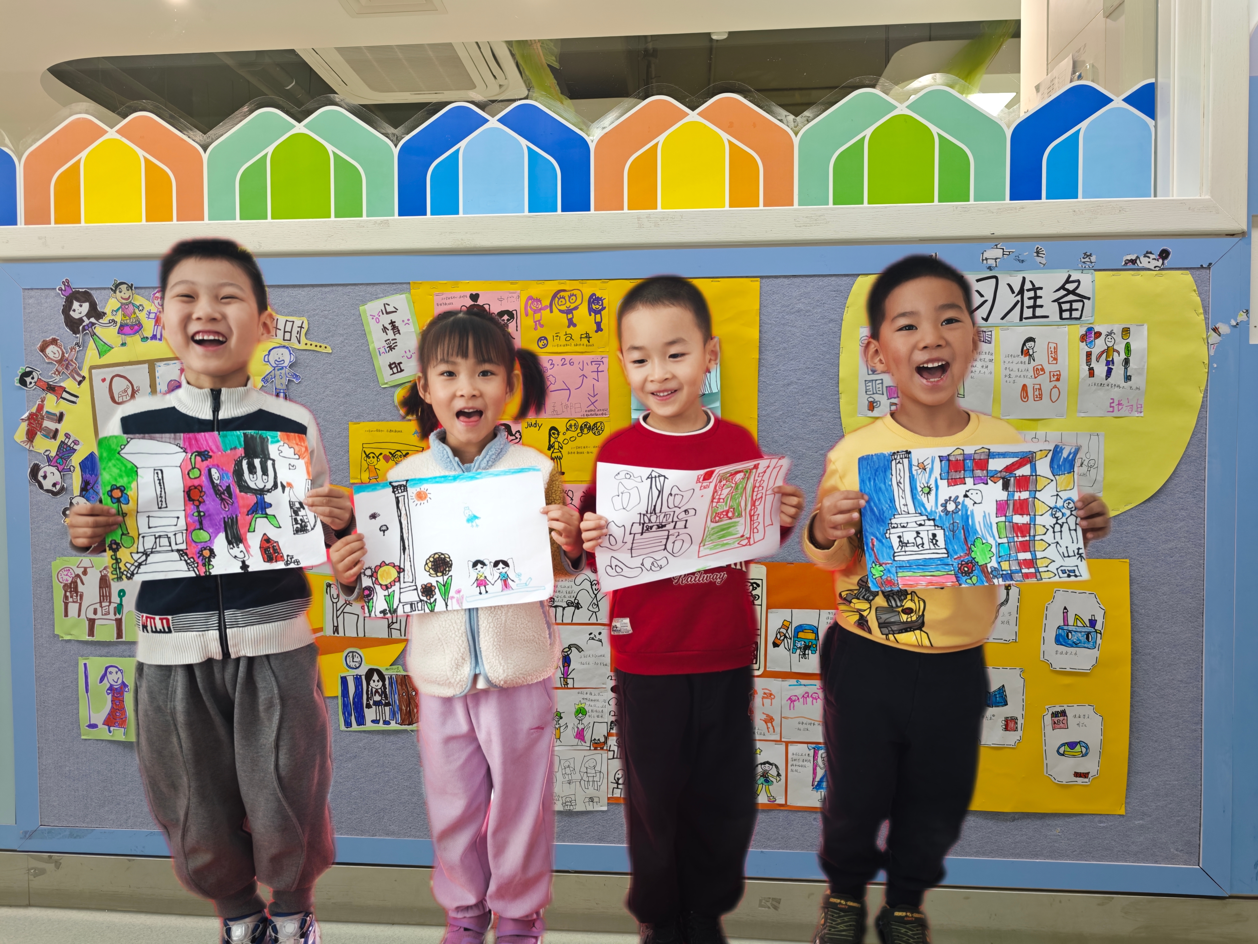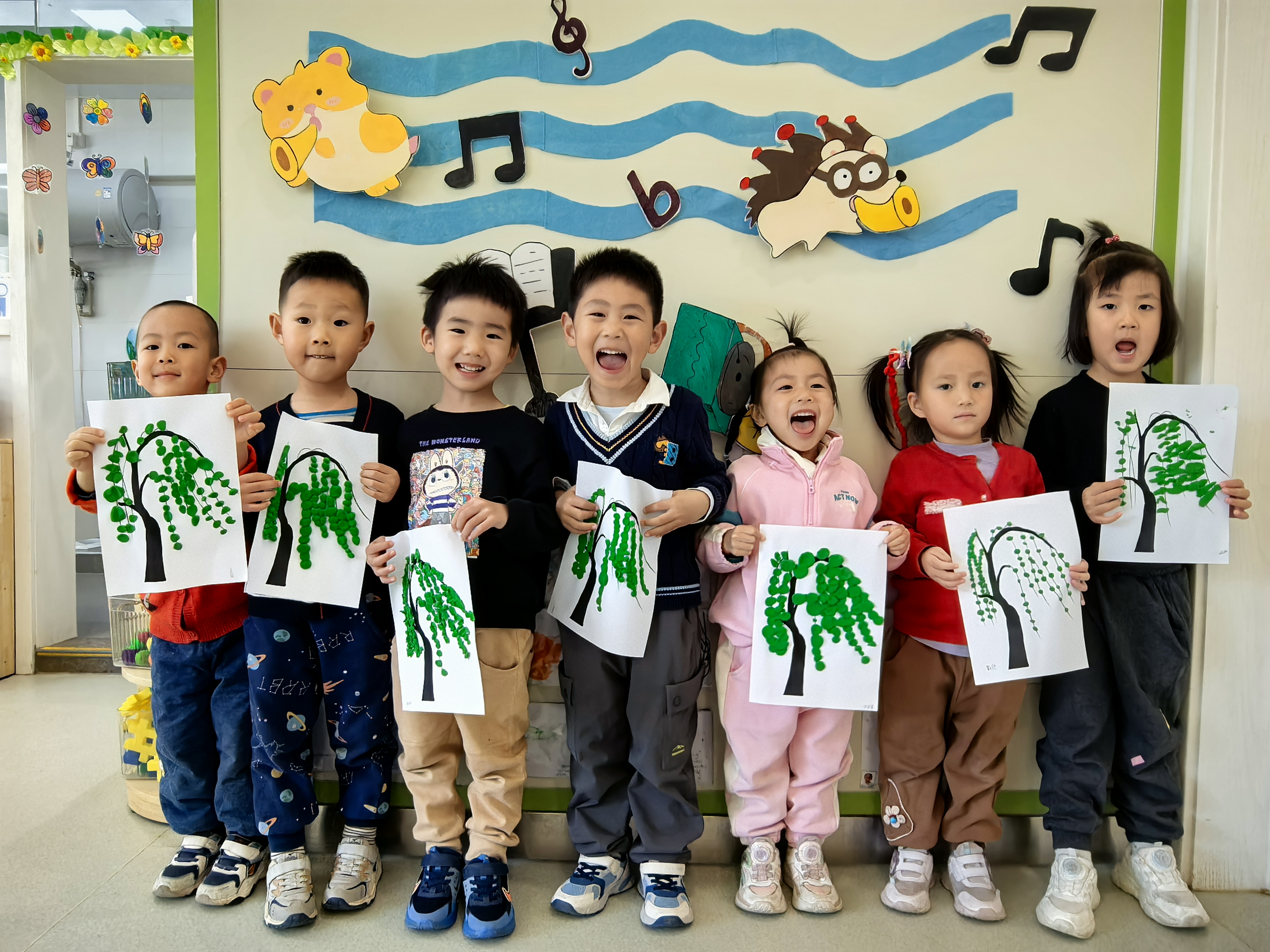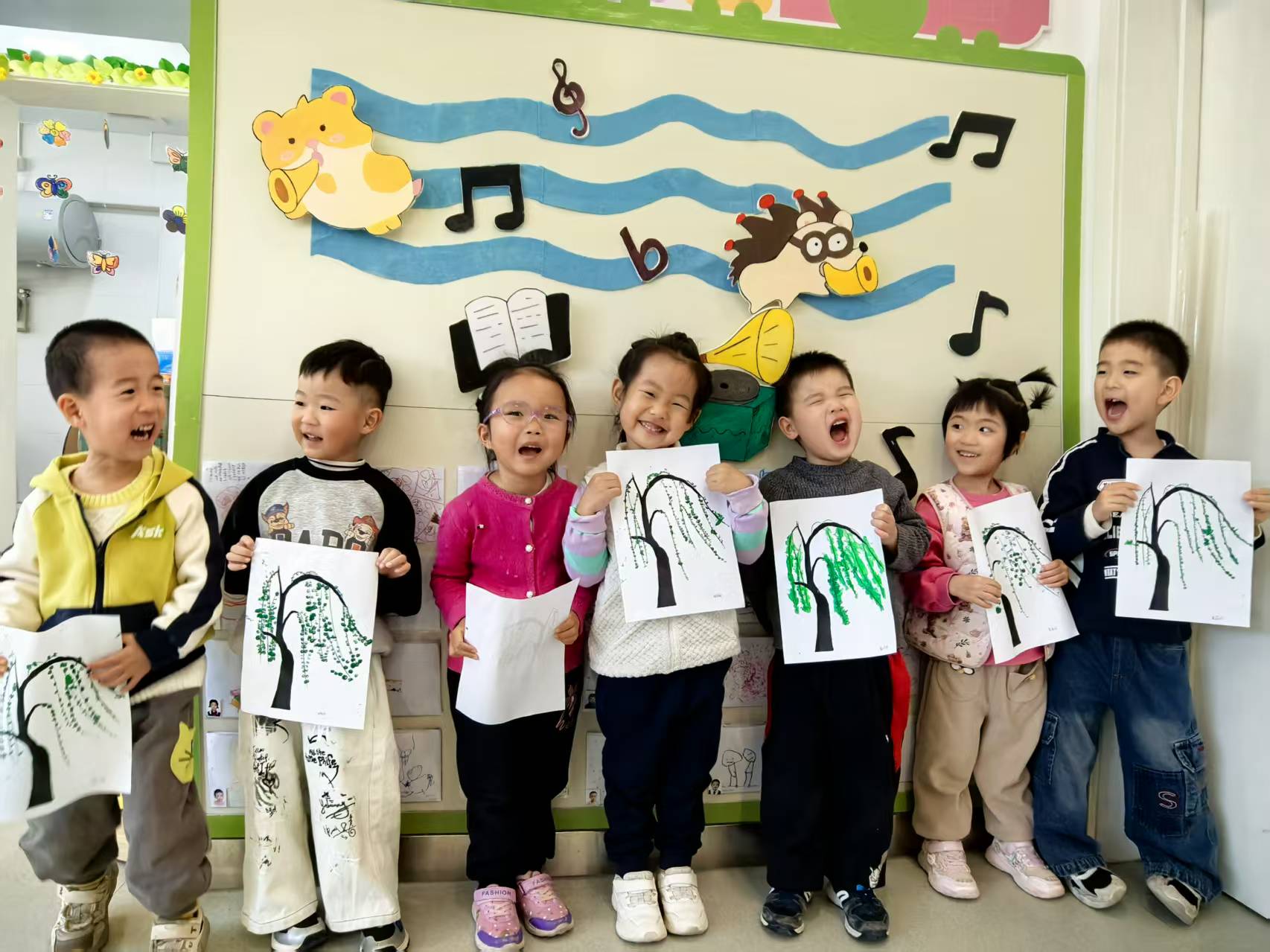 拿起画笔,把诗里的春雨、柳树画成诗配画,还一起布置了清明诗画墙,每一幅作品都是孩子们心中的诗意春天~