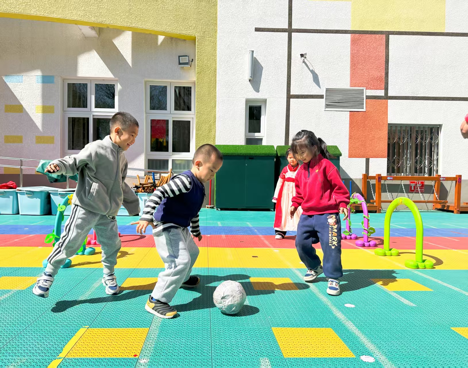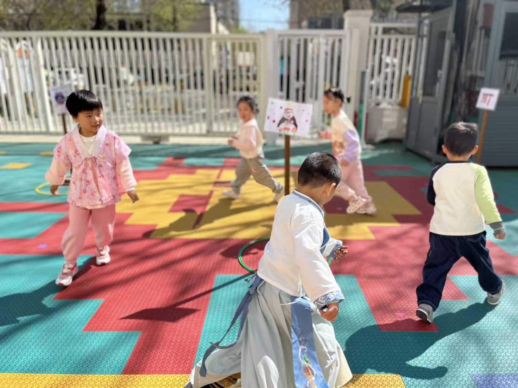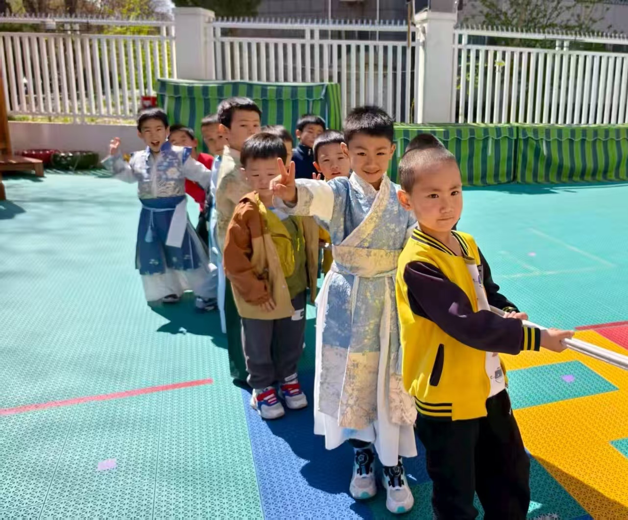 伴着轻柔的古风音乐,孩子们跳清明律动,踏青、插柳、放风筝的动作满是春日的灵动与温柔。