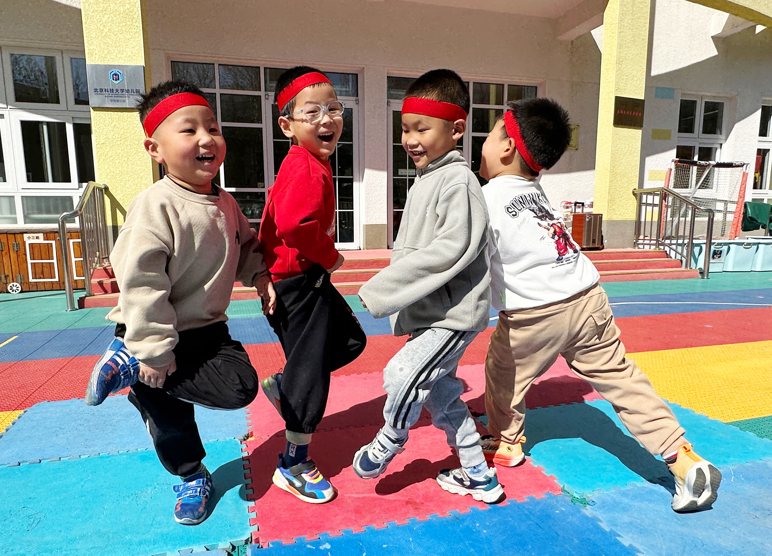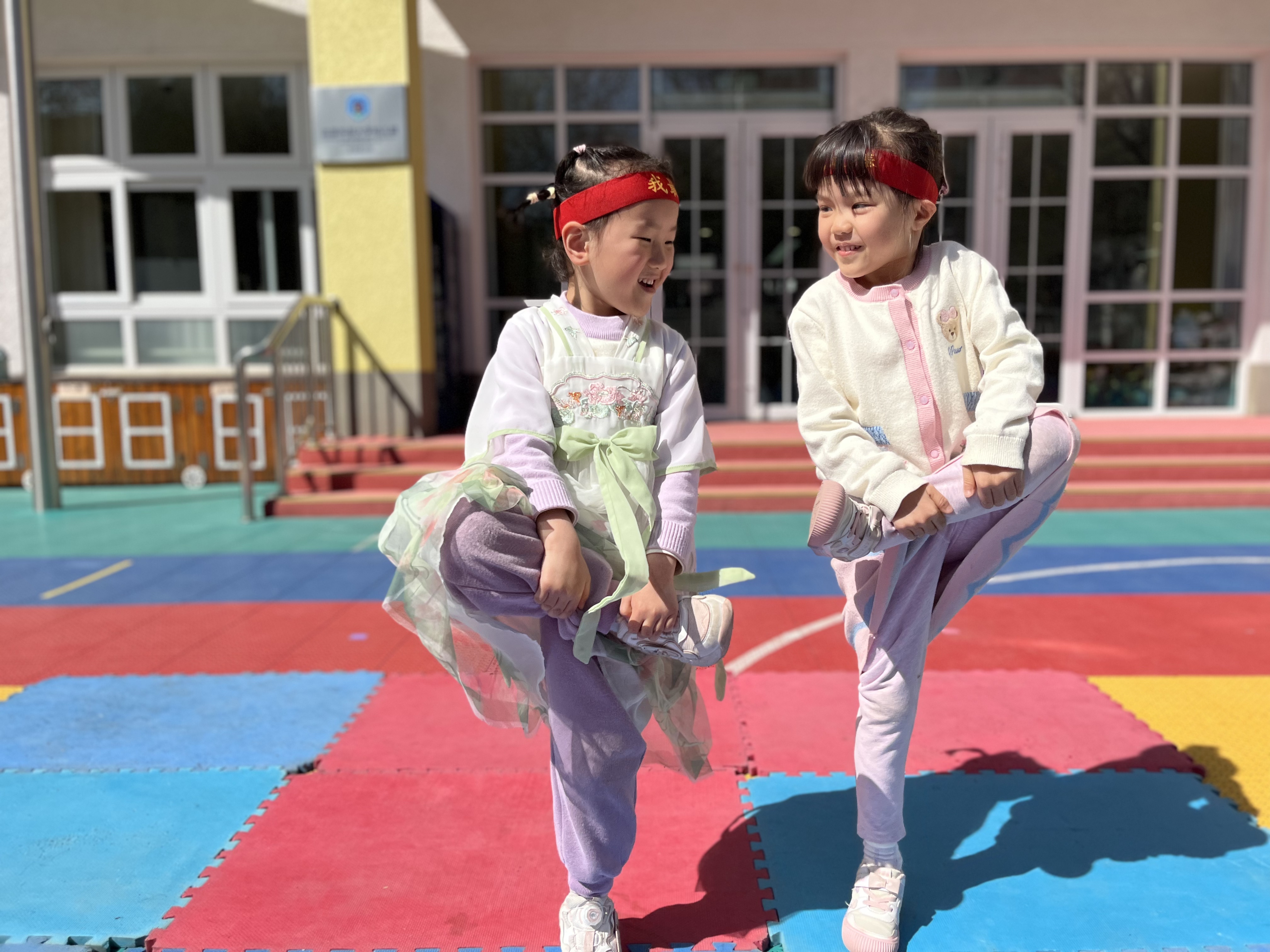 单脚跳跃的传统斗鸡,锻炼平衡小本领!